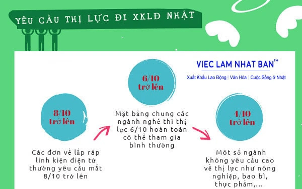 Trả Lời: Thị lực là yếu tố rất quan trong khi người lao động có định hướng xuất khẩu lao động Nhật Bản (XKLD Nhật). Do chương trình XKLD Nhật khi tham gia phải trực tiếp phỏng vấn với xí nghiệp, phải cạnh tranh theo tỷ lệ thông thường là 1 chọi 2 hoặc 1 chọi 3 nên rõ ràng thị lực kém là bất lợi không hề nhỏ. Chưa kể đến nhiều công việc yêu cầu thị lực tốt như xây dựng, điện tử, dệt may. Tất nhiên nếu thị lực con bác không tốt lắm thì vẫn có nhiều đơn hàng không yêu cầu quá cao về thị lực để lựa chọn, vậy nên bác cứ yên tâm nhé!